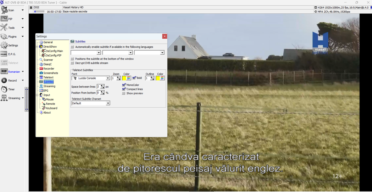 Configurarea culorilor se poate face pentru subtitrările transmise prin teletext, nu și pentru cele dvb. În cazul canalelor de cablu, subtitrarea este dvb, deci nu se aplică setarea culorii din Altdvb.