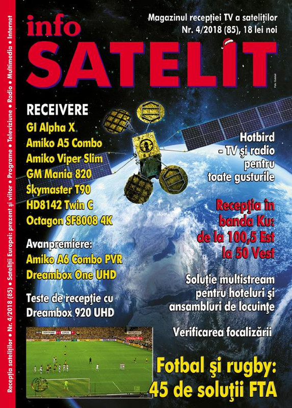 Vă semnalăm apariţia numărului 3/2018 al revistei Info Satelit - o publicaţie adevărată pentru impătimiţii recepţiei programelor de televiziune transmise prin satelit.