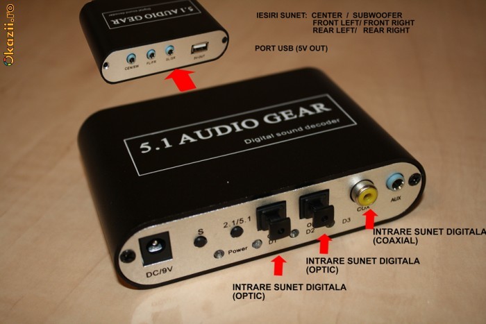 Echipament special proiectat pentru sistemele 5.1 care nu au intrari de semnal digital (optic sau coaxial) pentru a va bucura de un sunet de calitate 5.1 emis fie de un receptor satelit (Dreambox DM500s, Dreambox DM800HD) un mediaplayer(WD live, Eboda), un TV cu iesite optica.