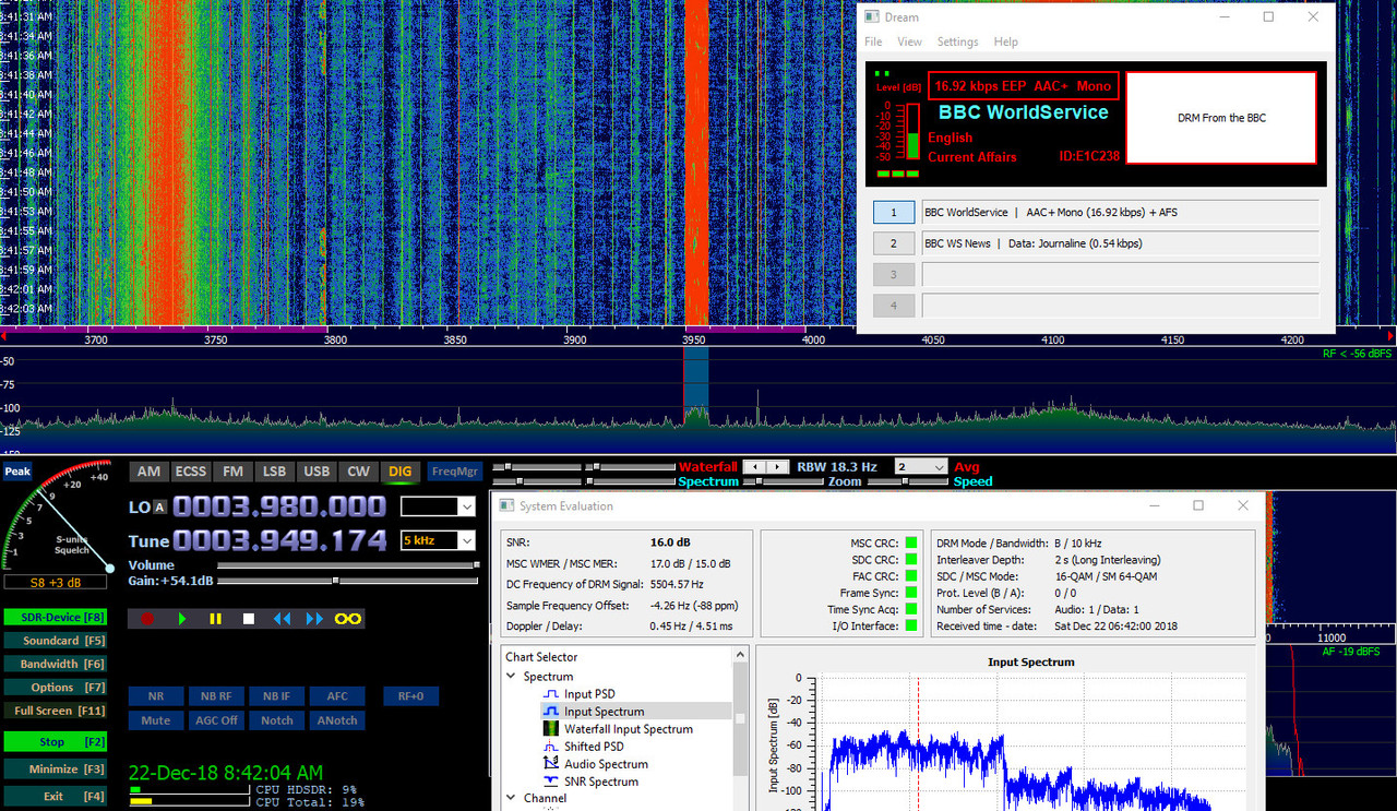 DRM_RX BBC World Service pe frecventa 3955 kHz.