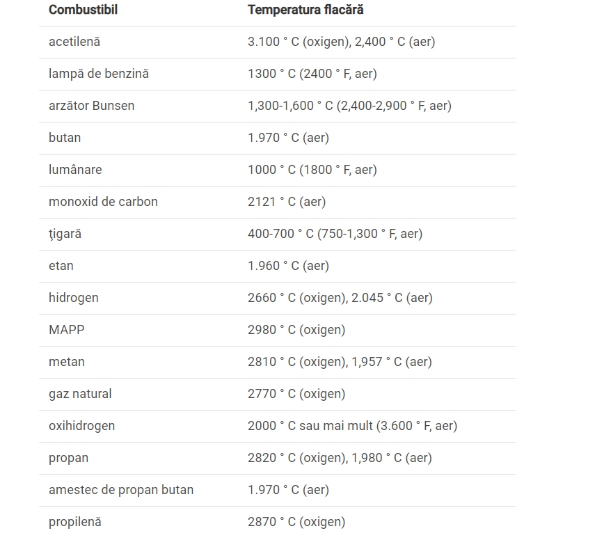 Din pacate nu cred nici eu ca se poate mari altfel temperatura decat prin oxigen. In tabel apar temperaturi pentru diferite substante dar in aer. Pe materialul de sudura temperatura scade mult.
