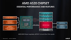AMD today announced its entry-level A520 desktop chipset for 3rd Gen Ryzen "Matisse" processors, and possible readiness for Athlon and Ryzen 4000G processors based on the "Renoir" silicon. Much like the B550, it lacks support for Ryzen 3 3200G and Ryzen 5 3400G processors based on the "Picasso" silicon, as well as older 2nd- and 1st Gen Ryzen processors. The A520 succeeds the A320 chipset, and enables motherboards priced deep under the $100-mark, close to the $50 magic figure. The ASMedia-sourced chipset has quite a few similarities with the B550, but one big segmentation - complete lack of PCIe Gen 4.