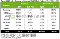 (PR) NAND Flash Revenue Undergoes 8.3% QoQ Growth in 1Q20 in Light of Surging Demand from Data Centers, Says TrendForce