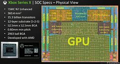 Microsoft in its Hot Chips 32 presentation detailed the SoC at the heart of the upcoming Xbox Series X entertainment system. The chip mostly uses AMD IP blocks, and is built on TSMC N7e (enhanced 7 nm) process. It is a 360.4 mm² die with a transistor count of 15.3 billion. Microsoft spoke about the nuts and bolts of the SoC, including its largest component - the GPU based on AMD's new RDNA2 graphics architecture. The GPU takes up much of the chip's die area, and has a raw SIMD throughput of 12 TFLOP/s. It meets DirectX 12 Ultimate logo requirements, supporting hardware-accelerated ray-tracing.