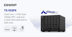 QNAP Systems, Inc., a leading computing, networking and storage solution innovator, today launched the TS-932PX, a compact 9-bay NAS featuring two 10 GbE SFP+ and 2.5 GbE RJ45 ports with four 2.5-inch SATA 6 Gb/s bays for dedicated SSD caching. The TS-932PX supports multi-cloud backup, cloud storage gateways, remote access, AI photo management and additional features for SMB to build an efficient high-speed network environment.