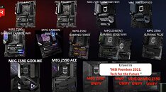 The Z590 motherboard lineups for both MSI and ASUS have just released and... They are interesting, to say the least. MSI will have as many as 12 different motherboard solutions, with the top one, the über-high-end MEG Z590 GODLIKE, retailing for as much as €999 ($1019). The MEG GODLIKE has faced a deep redesign compared to its predecessor, and there are two new MEG products directly under it - the MEG Z590 ACE and MEG Z590 UNIFY which are priced in a slightly less outrageous way (€479 for the MEG ACE, €379 for the MEG UNIFY). The cheapest MSI option stands as the Z590-A PRO, as €189.