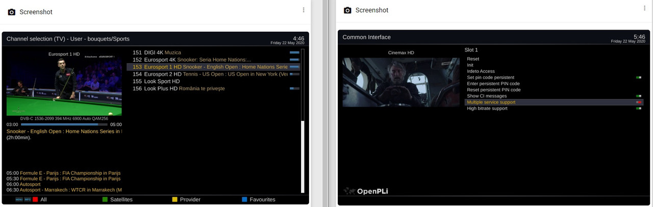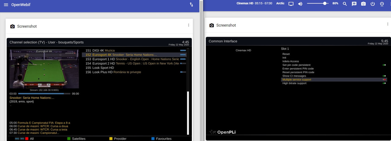 din pacate nu deschide 2 canale simultan, de exemplu: HBO1 si Eurosport4k ... asa este ...