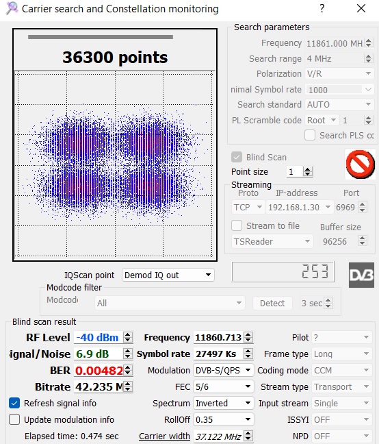 11976000 V 27500000 5/6 35 QPSK # 6.6 dB