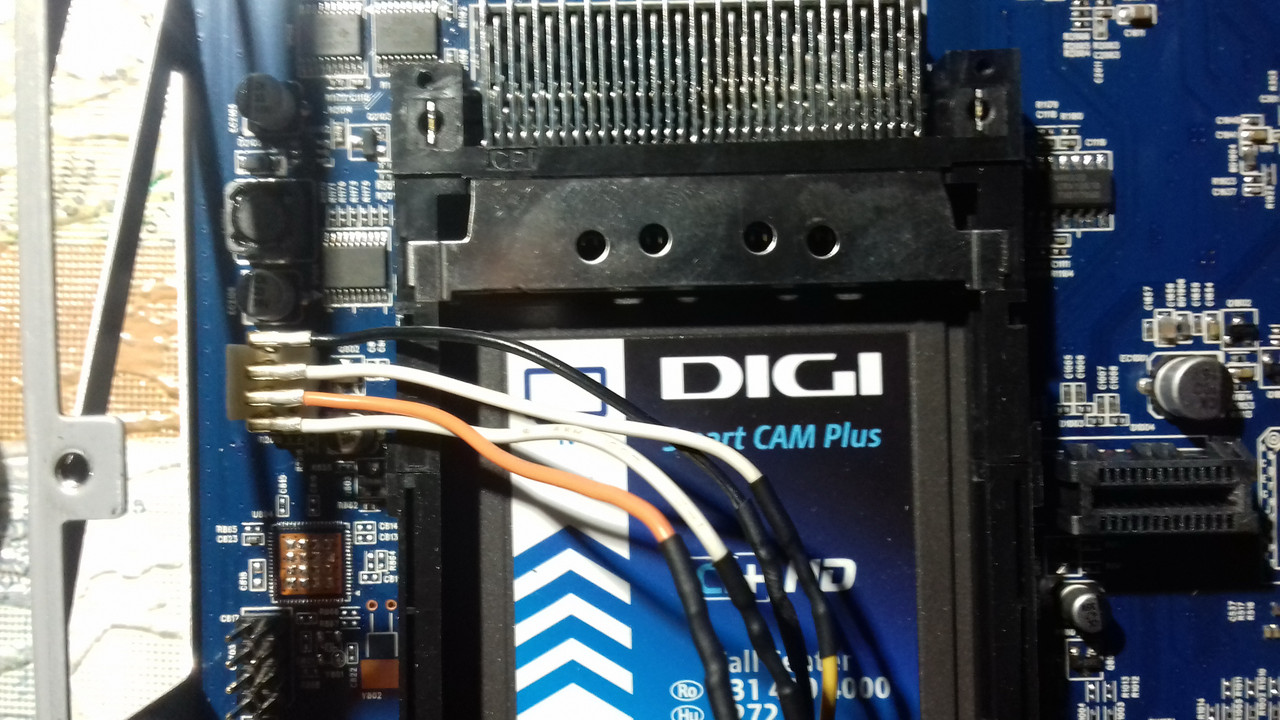 Am pus patru puncte de lipici cald (plastic) sa prinda bine ventilatorul, am identificat dupa cum a postat mario08 pini, dupa care am taiat conectorul ventilatorului si l-am prelungit cu niste conectori care vin pe placa de baza PC pentru comenzile din fata ( reset, power, etc. care in prealabil au fost scoase din suportul de plastic sa fie mai subtiri si sa poate fi indoite sa nu atinga in suportul HDD DM.