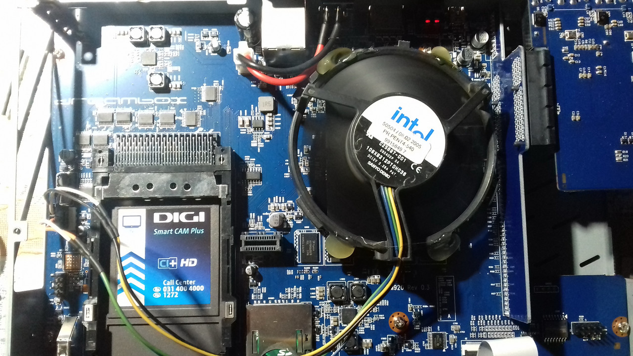 Am vazut ca se discuta despre ventilator in DM 920 si fiindca am vazut ca are pe placa de baza conectorul necesar, am montat un ventilator de la un procesor de pe o placa de baza.