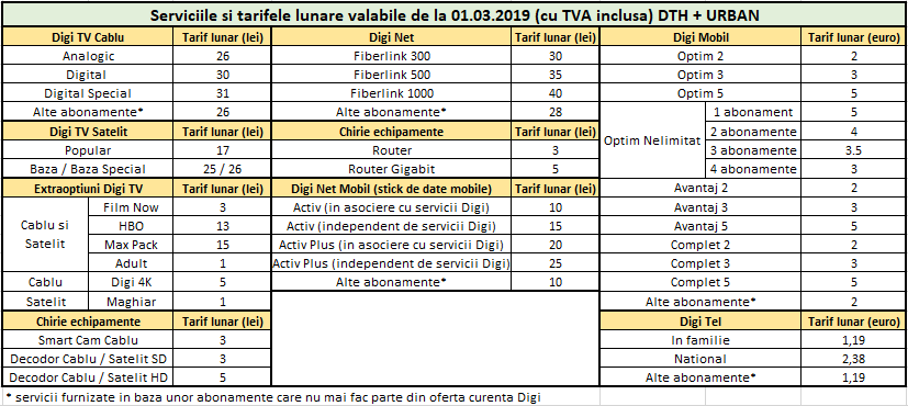 Pentru clientii existenti, va exista la Digi Tv Cablu si pretul de 26 lei, pentru servicii furnizate in baza unor abonamente care nu mai fac parte din oferta Digi.