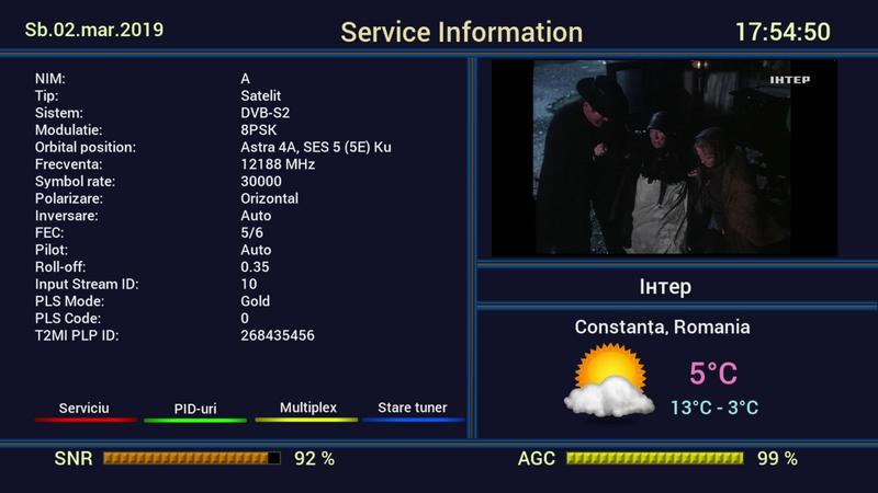 Am incercat in zadar sa receptionez canalele multistream ucrainiene in format T2-MI de pe 12188 H 30000, ASTRA4 5E.