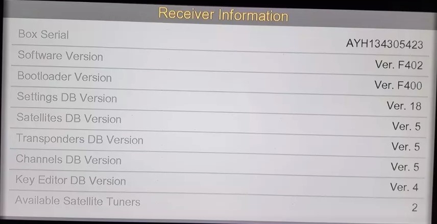 Descriere: Receptor folosit,estetic de nota 9,8,functional 10/10,are software F402 ,care e de fapt ultima,rezolutie 1080p,aspect imagine 4/3 si 16/9,cititor card multisistem,port ethernet 10/100 RJ 45,cautare manuala,automata,blind,mufa HDMI,telecomanda functionala.