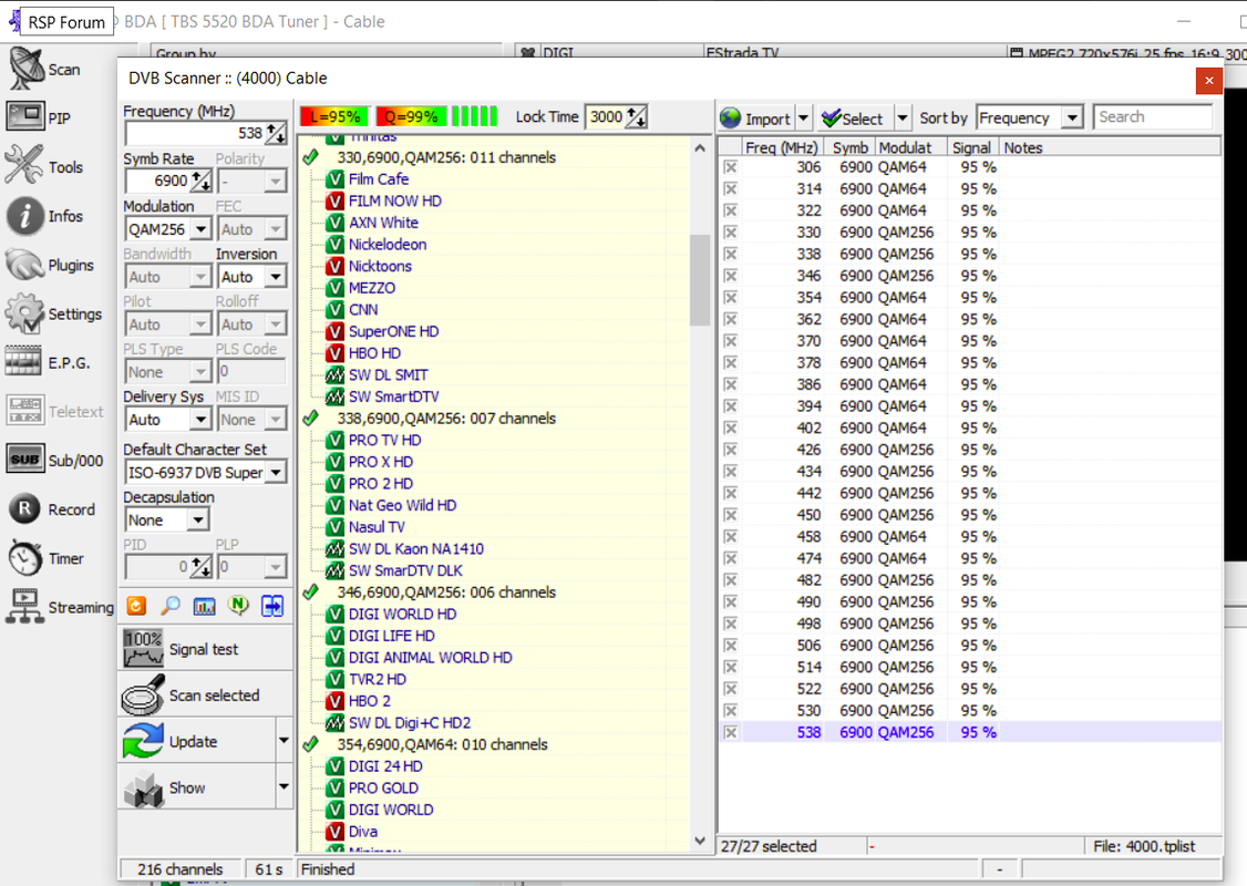 Am dat si eu de acest topic si avand 2 tunere de astea am zis sa incerc. Doar ca desi scaneaza si memoreaza canalele DVB-T2 nu reda nimic. Sistemul este cu windows 11. O fi de la w11? Nici semnal nu arata cand vreau sa ma uit, doar la scanare imi arata L si Q