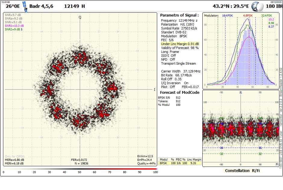 Am observat si eu o anomalie pe transponderul respectiv. Semnalul are 9dB pe spectru dar nu e vazut.