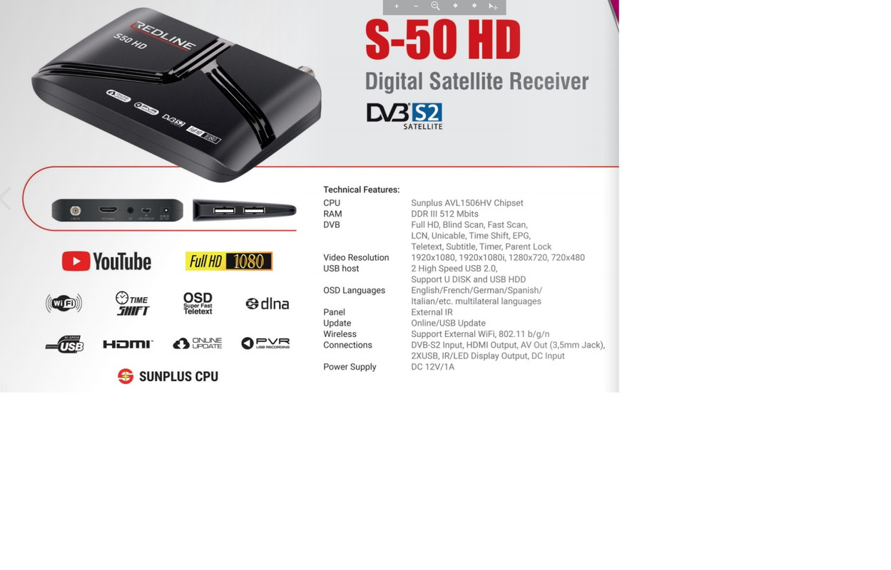 Other Features IR and LED Display, HDMI Output, AV Out (3.5 mm Earphone Jack), 2 USB, DC Input (12V 1A) DVB-S2 Input