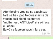 De astăzi, vaccinarea va avea loc în orașul meu. Nu sunt unul dintre oamenii importanți din punct de vedere sistemic! Deci direct la centrul de vaccinare din centrul orașului. Totul s-a făcut în decurs de 2 ore. Orice se spune este cu adevărat adevărat. Un cip este plantat sub piele în timpul vaccinării. Acum recepționez 50 de programe de televiziune și 20 de programe radio. Când mișc capul în sus sau în jos, dau mai tare și mai încet. Dacă mișc capul spre stânga sau spre dreapta, pot schimba programele. După următoarea vaccinare, este posibilă recepția în calitate HD. Și tocmai am descoperit că, dacă ridic brațul stâng și întind degetul mijlociu, pot vedea DIGI necriptat!"