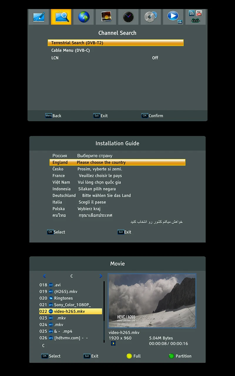 DVB-T2/DVB-C dual signal source reception: most countries in Europe, Asia, Africa, and Australia can receive signals;