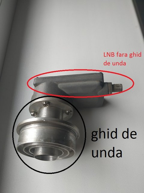 lnbul din poza daca e foarte vechi e un grundig de 0,7-0,6 daca e doar vechi poate fi un maximum, mti de 0,4-0,3 . Ghidul de unda care-l ai la lnb ,este un model bun ,git scurt ,te ajuta la semnale slabute, este modelul de ghid de unda cu care a venit antena. Ca sa pui lnb de offset trebui sa-l tai si sa-ti faca cineva o adaptare ,lucru putin probabil pentru ca nu gasesti un strungar priceput si cu scula de mare precizie. Asa ca ai grija de ghidul de unda ca odata pierdut ,nu ai de unde sa cumperi altul. Prinderea lnbului de la antena nu prea te ajuta ,e o tabla cu o gaura circulara pe care sa intre ghidul de unda si in parte de jos are o piulita sudata de ea si cu surubul care trece prin piulita fixezi lnbul. La modelul acesta de prindere reglajul focarului se face doar din bete , capatul betelor care sint prinse pe marginea antenei.