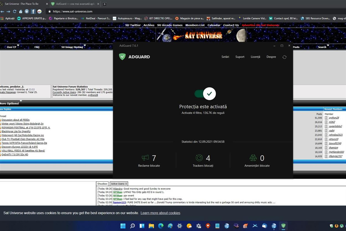 Salut. Am instalat AdGuard pe windows 11 si e excelent. Pe satuniverse foloseam AdBlok care merge si el ok, dar dupa cateva secunde intra AdBlok-ul la AdBlocul meu instalat si bloca site-ul.