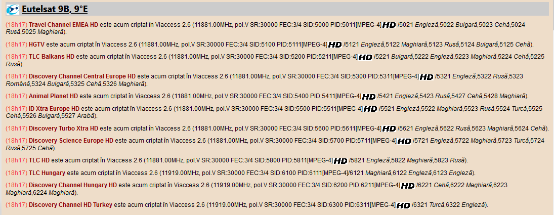 Mulțumiri, am testat, pe 9E 11881V30000 programele sunt FTA. Nu stiu cît va dura minunea!