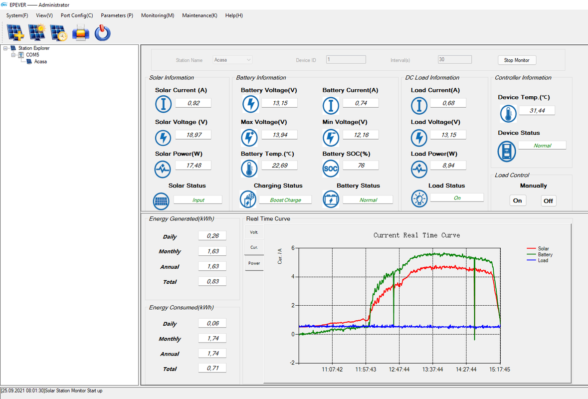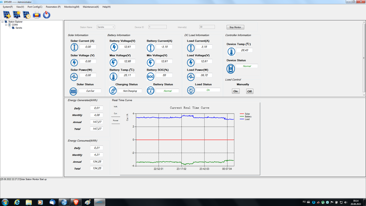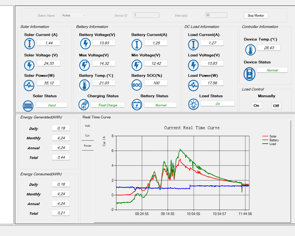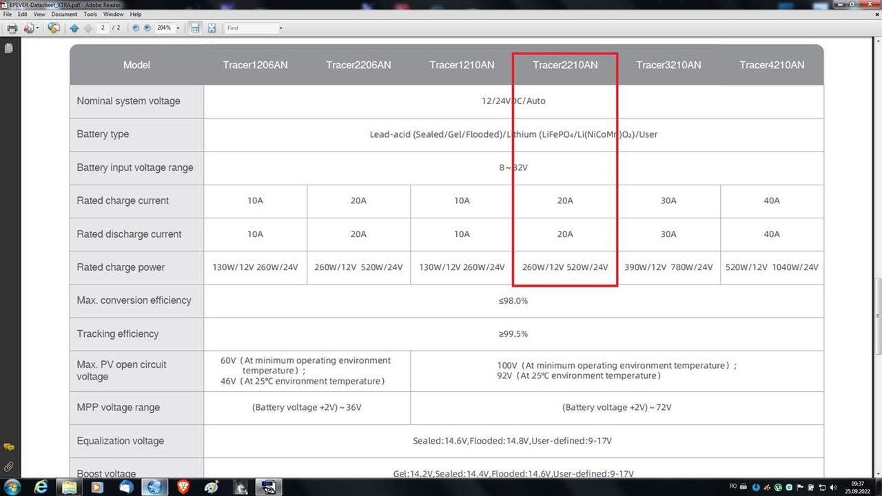 In prima faza am montat un panou de 110W monocristalin, un acumulator de 12v/100 Ah pe gel tip DbSolar, si un cotroler MPPT Tracer 2210AN de 20 A, conctat cu senzor temperatura pe acumulator si cablu monitorizare pe PC.