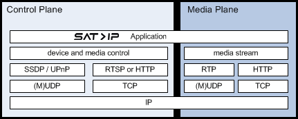 Protocolul SAT> IP este divizat logic într-un plan media şi într-un plan de control.