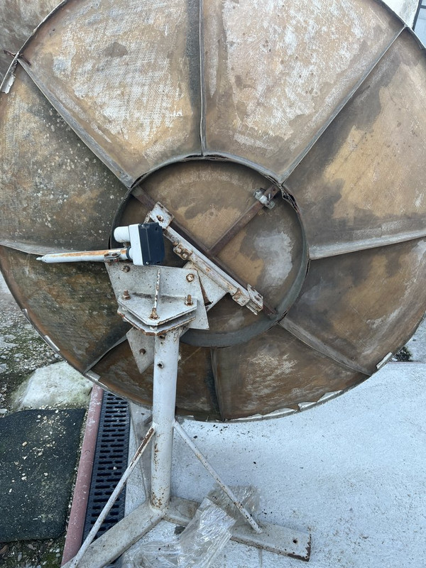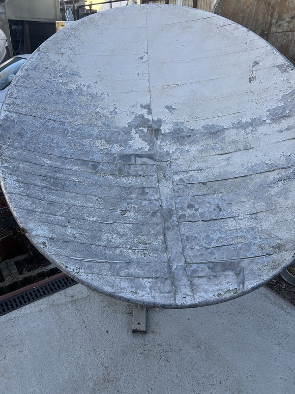 este vorba de o antena de fibra facuta de un prieten in 1988 si care la plecarea in canada in 1993 mi-a lasat-o mie . Diametrul este de 150cm , antena a mers bine , a rezistat bine dar acum nu mai am de ce sa o tin ,imi ocupa loc aiurea , va merge la gunoi . Daca multe antene de fibra fabricate in perioada 1990-1995 sint de mult disparute fiind facute pe fuga cu strat subtire de fibra aceasta e fost chiar bine gindita si turnata in mai multe straturi de fibra. Pot spune ca undeva prin 1998-1999 am acoperit-o cu folie de aluminiu si dupa parerea mea -am gresit , trebuia sa caut vopsea cu pulbere si sa las naibii folia de aluminiu. Atasez 2 poze pentru cei interesati.