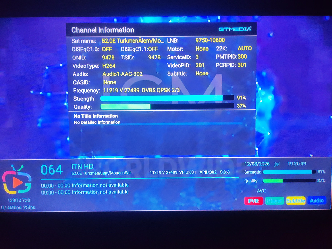 Pachetul Televisa Network de la 34.5W este in acest moment necodat. Nu stiu cit va fi liber, de aceea este o ocazie potrivita pentru cei cei care vor sa-l vada.