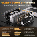 Equipped with Kailh Midnight Pro Silent switches and a multi-layer dampened chassis, this keyboard offers an ultra-quiet typing experience. It features hot-swappable switch support, dedicated media controls, and programmable M keys. With tri-mode connectivity, a magnetic memory foam wrist rest, and ergonomic design, all components are seamlessly integrated into a sound-optimized body adaptable to any battlefield or workflow.