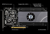 GIGABYTE has launched its AI TOP CXL R5X4 expansion card that can boost system memory by up to 512 GB using CXL technology. The AI TOP CXL R5X4 plugs into a PCIe 5.0 x16 slot and works with CXL 2.0/1.1 standards. It has four DDR5 RDIMM slots, each supporting memory modules up to 128 GB with ECC. This setup is different from built-in CXL options like Samsung CMM-D modules as it uses regular DDR5 memory so you have more choices for how much memory to add. The card is 120 mm x 254 mm and has a 16-layer HDI PCB. At full load, it uses about 70 W of power and needs an 8-pin EXT12V plug to work. An LED on the card shows if it's powered up while a single AIO fan cools the Microchip PM8712 controller.
