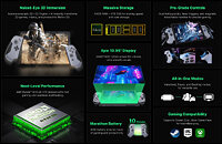 HoloMax's autostereoscopic 3D pipeline with eye-tracking keeps visuals stable across viewing angles and motion, delivering instant depth for games, video, and creative previews. The device is engineered for demanding experiences while remaining portable: it combines console-class compute with flexible form factors—detachable magnetic controllers, an adjustable stand, and a magnetic snap-on keyboard to switch between handheld and desktop workflows in seconds.