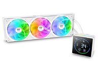 Thermaltake today introduced the TH-S V3 ARGB Sync, a line of mid-range all-in-one, liquid CPU coolers. The cooler comes in black and white color trims, and in radiator size-based variants of 240 mm and 360 mm for each. These coolers are characterized by a simple segment LED display that puts out CPU temperature, usage average, clock speed, and power draw values. It pulls these values by interfacing with software over USB, which in turn gets them from ACPI.