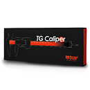The TG Caliper is an affordable digital caliper made of high-hardness, rust-resistant ABS plastic that sufficiently covers the most important measuring functions in the PC DIY segment. The measuring range is up to 150 mm / 6 inches. An ergonomically textured thumb wheel makes handling the caliper easier. The measured values are displayed on the LCD in either the metric or imperial system, with a resolution/readout of 0.1 mm / 0.01 inch and an accuracy of ±0.2 mm / 0.01 inch. A zero function allows two measurements to be compared easily. The device is powered by an LR44 battery, and two of them are included in the scope of delivery. The caliper is dust- and splash-resistant (IP54).