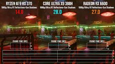Intel's "Panther Lake" chips, built on the 18A node, debuted at CES 2026, featuring Arc B390 integrated graphics. This launch shows that Intel is now commited to delivering some of the best-in-class iGPU performance. Digital Foundry has reported impressive performance claims from Intel. In Cyberpunk 2077, at 1080p resolution with the game set to "Ultra" and with ray-traced shadows and reflections enabled, Intel's top-tier Core Ultra X9 388H SKU achieves 28 FPS. While this may not seem remarkable at first glance, under the same settings, AMD's "Strix Point" Ryzen AI 9 HX 370 with Radeon 890M graphics manages only 14 FPS. This suggests that the "Panther Lake" chip performs twice as fast in early game results. In Intel's own testing, the "Panther Lake" chip is 73% faster with upscaling technologies and 82% faster at native resolution compared to AMD's "Strix Point," indicating an average across multiple titles. This also means there are instances where the Arc B390 outputs 100% more frames compared to the Radeon 890M.